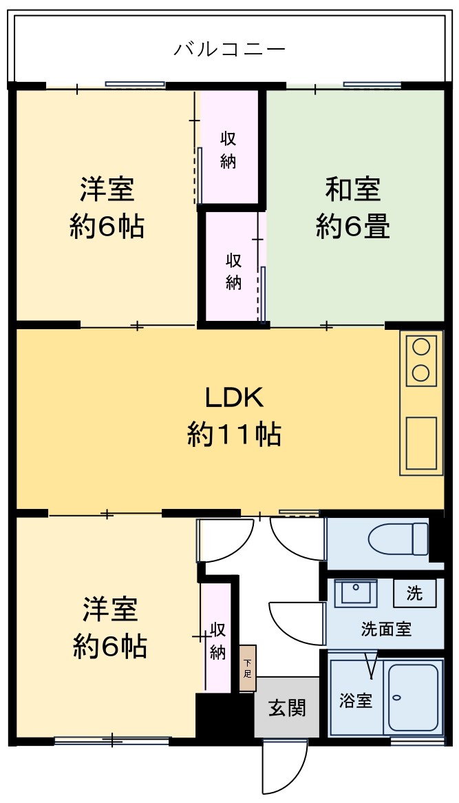 LDK11畳 和室6畳 洋室6畳 洋室6畳