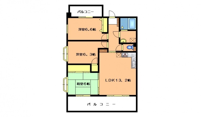 LDK13.2畳 和室6畳 洋室6.6畳 洋室6.3畳
